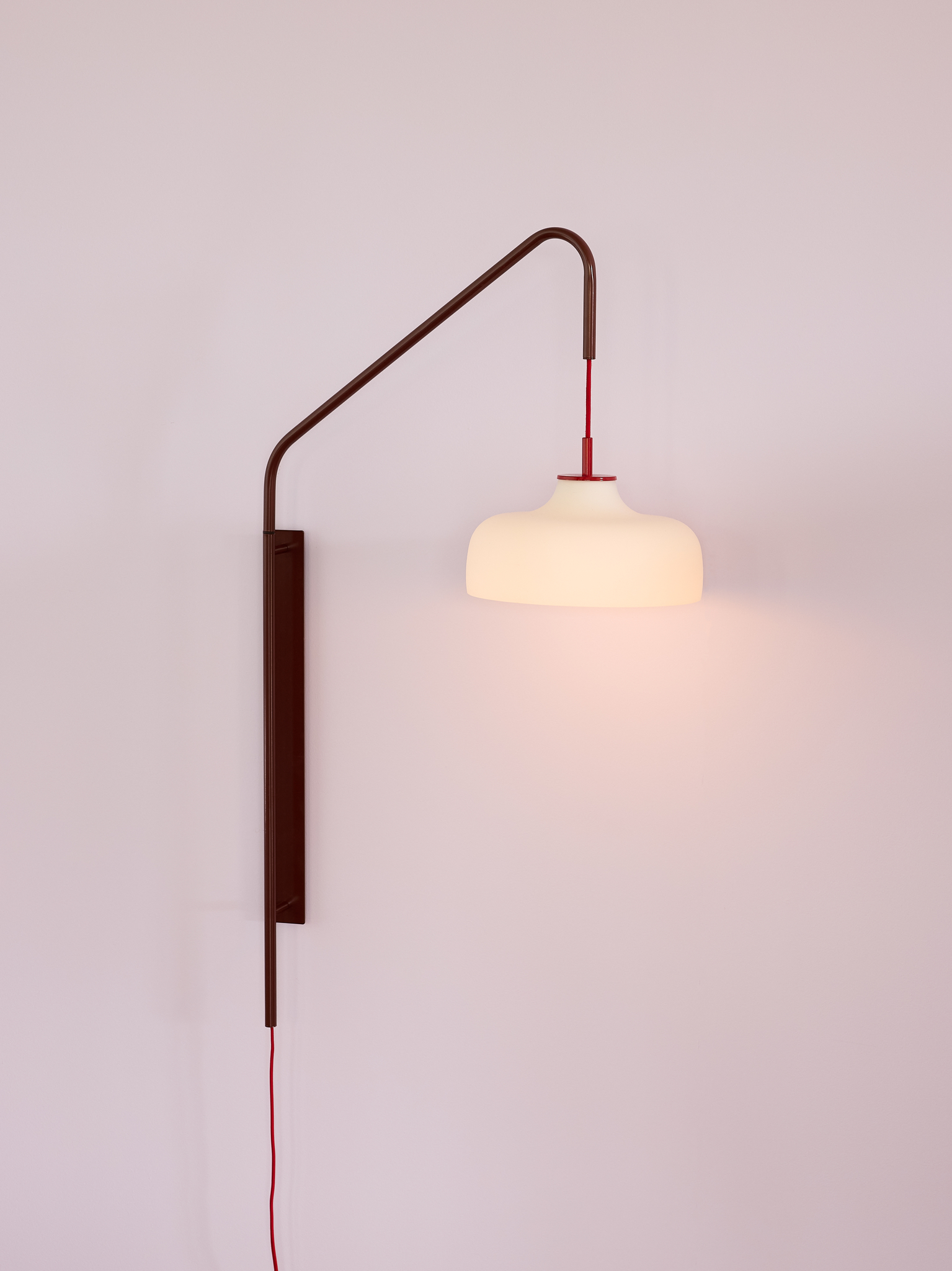 La lumière murale Current est l’élément parfait pour ajouter une touche graphique et audacieuse à votre intérieur. Avec son design excentrique et sa combinaison de couleurs bordeaux et blanc, cette lampe se distingue vraiment. Sa taille substantielle et sa forme unique créent un impact visuel fort, idéal pour sublimer votre salon, entrée ou même une chambre.
