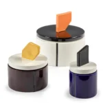 Plan C, la marque de mode excentrique de Carolina Castiglioni (fille des fondateurs de Marni), se lance pour la première fois dans la décoration d’intérieur avec Serax. Ce coffret de trois bougies parfumées se distingue par ses formes ludiques, ses couleurs vives et ses poignées imposantes, un clin d’œil au mouvement Memphis italien des années 80. Les parfums proposés sont Pivoine, Poudre de Basilic et Bois de Cèdre.