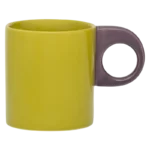 Ce grand mug en céramique associe le vert olive et le violet dans une combinaison inattendue. Son anse originale et ses lignes arrondies lui confèrent à la fois confort et caractère. Un véritable indispensable du quotidien : audacieux, chaleureux et expressif.